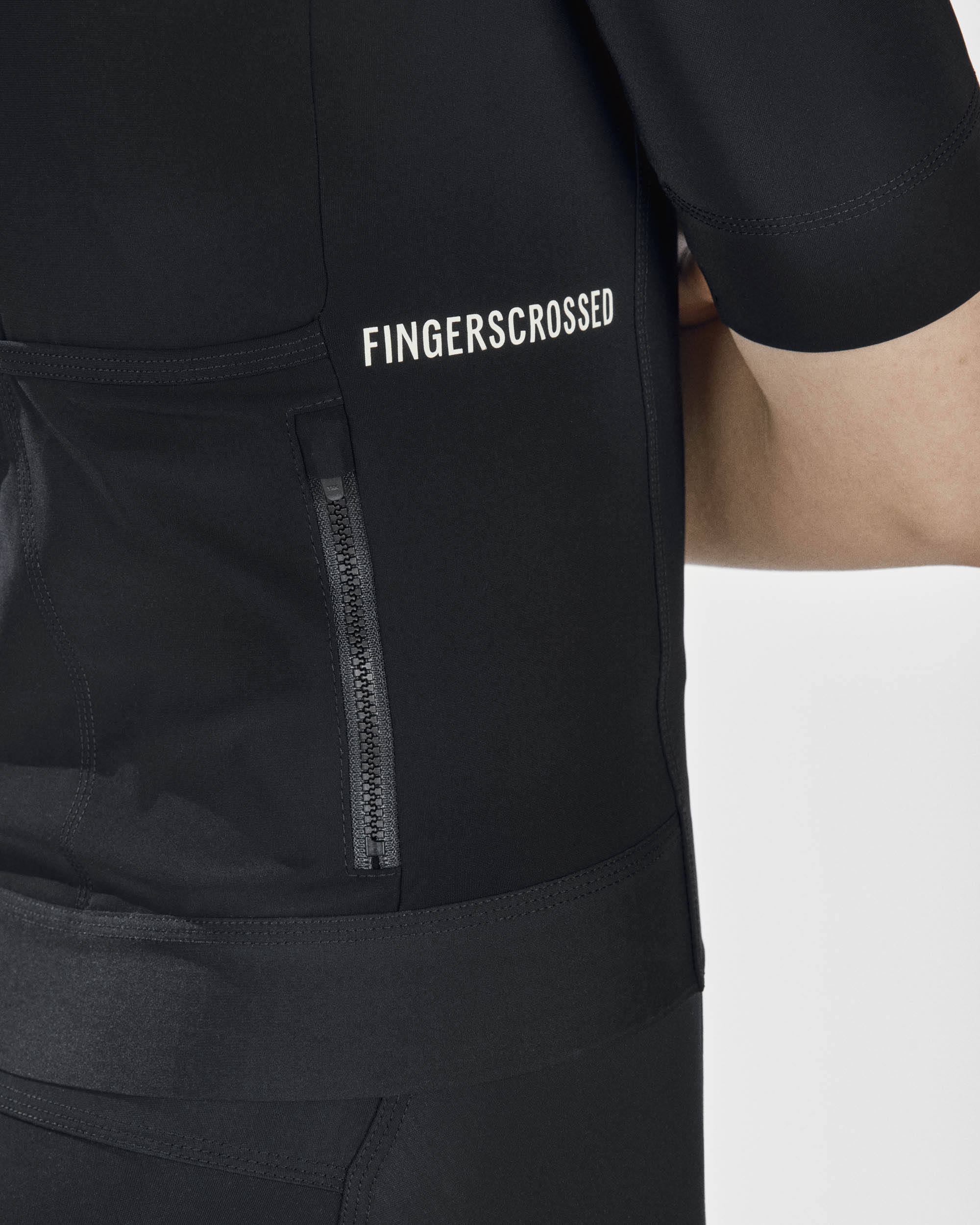 Three back pockets take up all of your on bike essentials, held in place by a rubberized elastic along the back hem. Additional zippered pocket secures all your small personal belongings.
